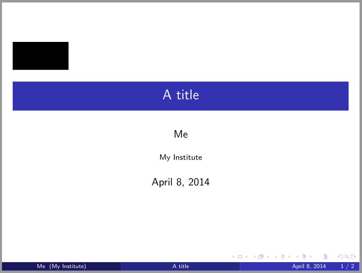 Create a box for the title and subtitle of the presentation. I use berkeley beamer theme which i would like to keep, if possible.. 02.12.2013 · place logo properly in beamer date mon 02 december 2013 category latex tags logo / beamer / pgf.