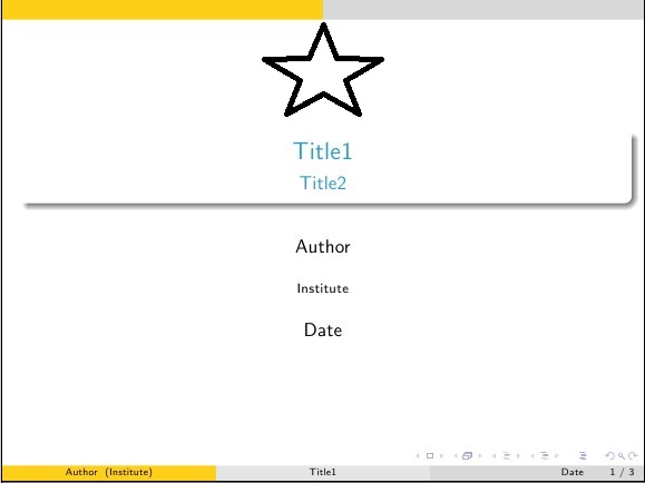 6.3 add logo to title page. 6.3 add logo to title page. Create a box for the title and subtitle of the presentation. Also, to hide logo and also page number on title page, you'll need to this. \documentclass aspectratio=169 {beamer} \usepackage english {babel} % 加导航.